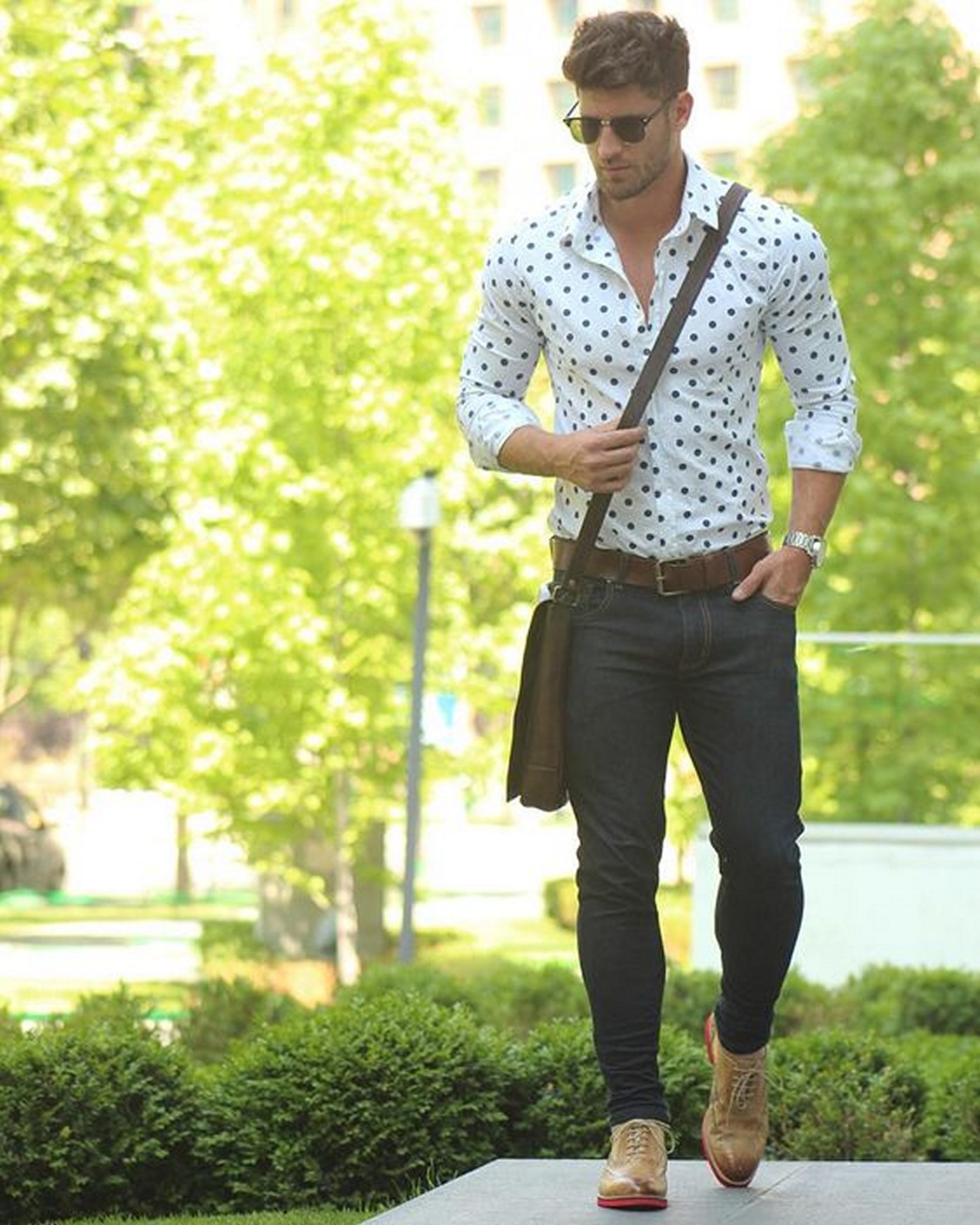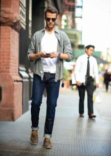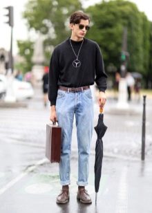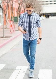 Les jeans sont avant tout attirés par leur simplicité. Ce produit peut être complété par presque n'importe quel article, y compris un T-shirt classique et un pull oversize. Le plus souvent, les gars combinent un jean avec une chemise. Cette option convient aux hommes de tout âge. Même lors d'un événement festif, cette option semblera appropriée.