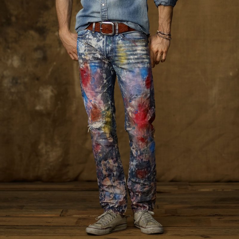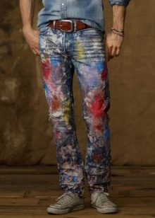 Bien sûr, les hommes ont intérêt à opter pour des couleurs plus foncées ou originales. Par exemple, un achat intéressant sera un jean camouflage ou avec un motif... Les jeunes représentants du sexe fort peuvent choisir quelque chose d'amusant dans une cage. De plus, les modèles à carreaux brillants sont pertinents non seulement pour les loisirs, mais même pour le bureau.