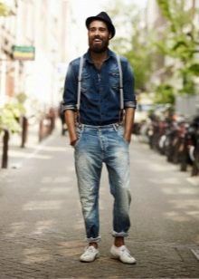 - Jean ample donner au corps une liberté totale. En même temps, ils permettent de compenser les lacunes de la figure. Ils se marient bien avec des articles de sport.