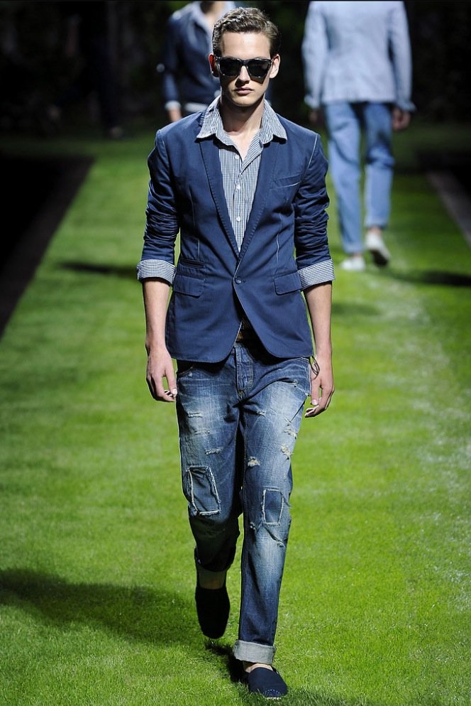 Les variantes pour les saisons de printemps et d'été ont des couleurs plus positives. Parmi eux, vous pouvez trouver des nuances de blanc, de bleu et de gris clair. Dans le même temps, on trouve souvent des modèles effilochés ou frangés. Parmi les jeans homme les plus en vogue, les créateurs ont inclus le vert et ses nuances sourdes et lumineuses. Parmi les nouveaux produits, il convient de prêter attention aux modèles bicolores, dans lesquels la couleur principale est complétée par une teinte similaire.
