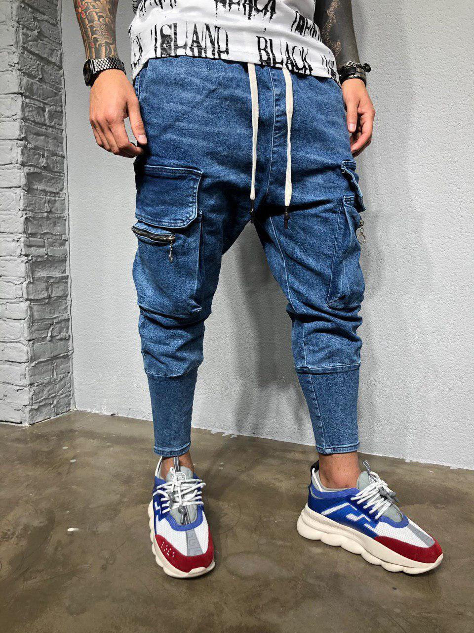 Les jeans à revers sont devenus des favoris pendant plusieurs saisons consécutives. Souvent parmi eux, vous pouvez trouver des pantalons avec des patchs ou des slogans. Aujourd'hui, vous ne surprendrez personne avec un simple casual, c'est pourquoi il a été décidé de créer des joggings. Dans cette version, le casual a été complété par des classiques du sport, qui séduiront clairement les hommes de caractère.