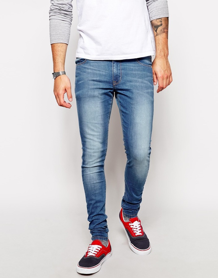 - Pantalon super skinny (maigre) Tout le monde ne l'aimera pas. Ces jeans super skinny ne conviennent qu'aux personnes minces et élancées.