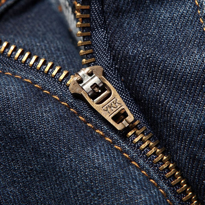 Une fermeture à glissière solide est également un indicateur de haute qualité. Même s'il ne converge pas complètement, il ne doit pas s'ouvrir tout seul. Les lettres YBS ou YKK seront gravées sur le chien., il peut également s'agir de la marque du fabricant. Le dernier paramètre est toujours présent sur tous les rivets visibles de l'intérieur du tissu.
