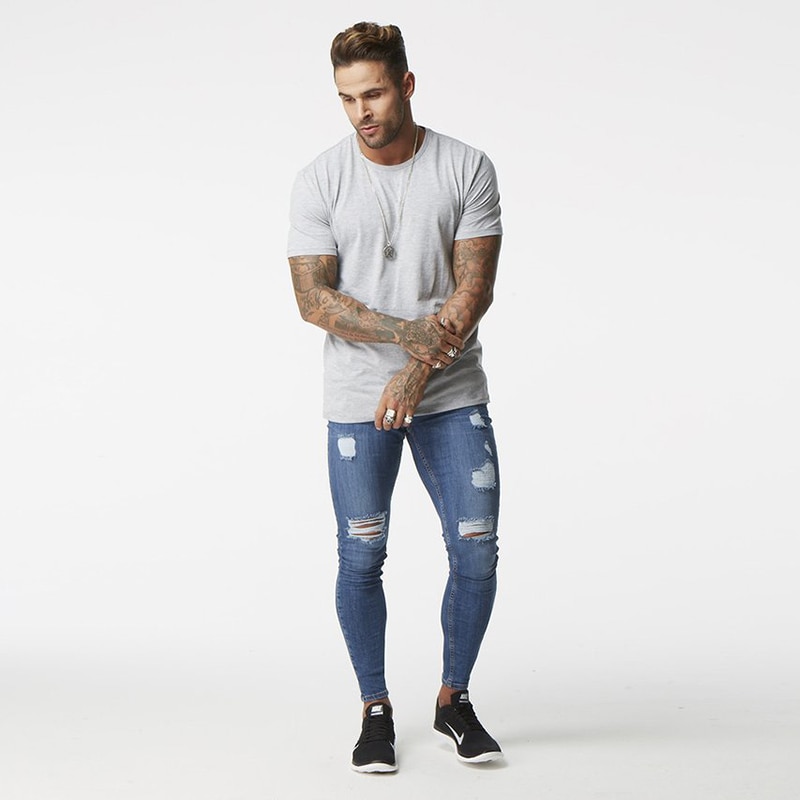 - Le bas très effilé ne convient qu'aux hommes athlétiques aux jambes droites. Il est important d'associer ce jean avec la bonne tenue pour ne pas avoir l'air ridicule.