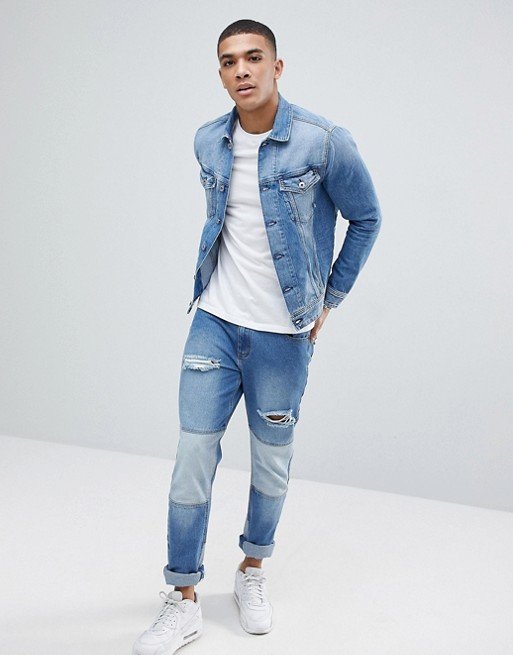 Un pantalon et une veste en jean auront fière allure dans une palette de bleus.