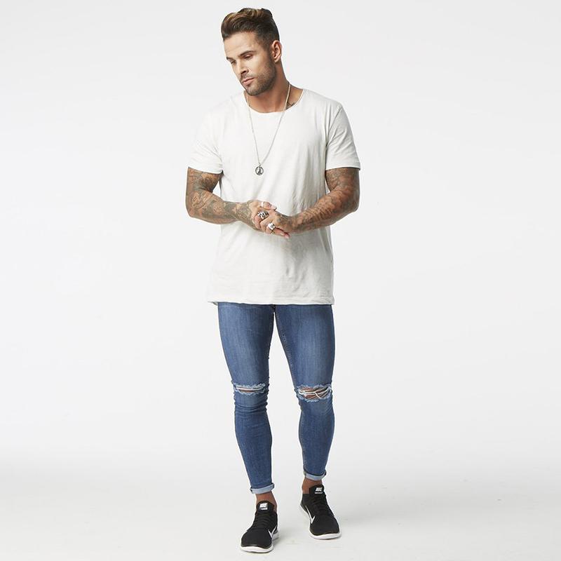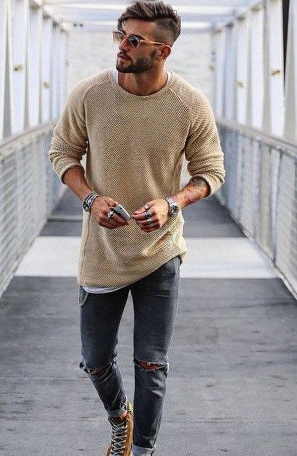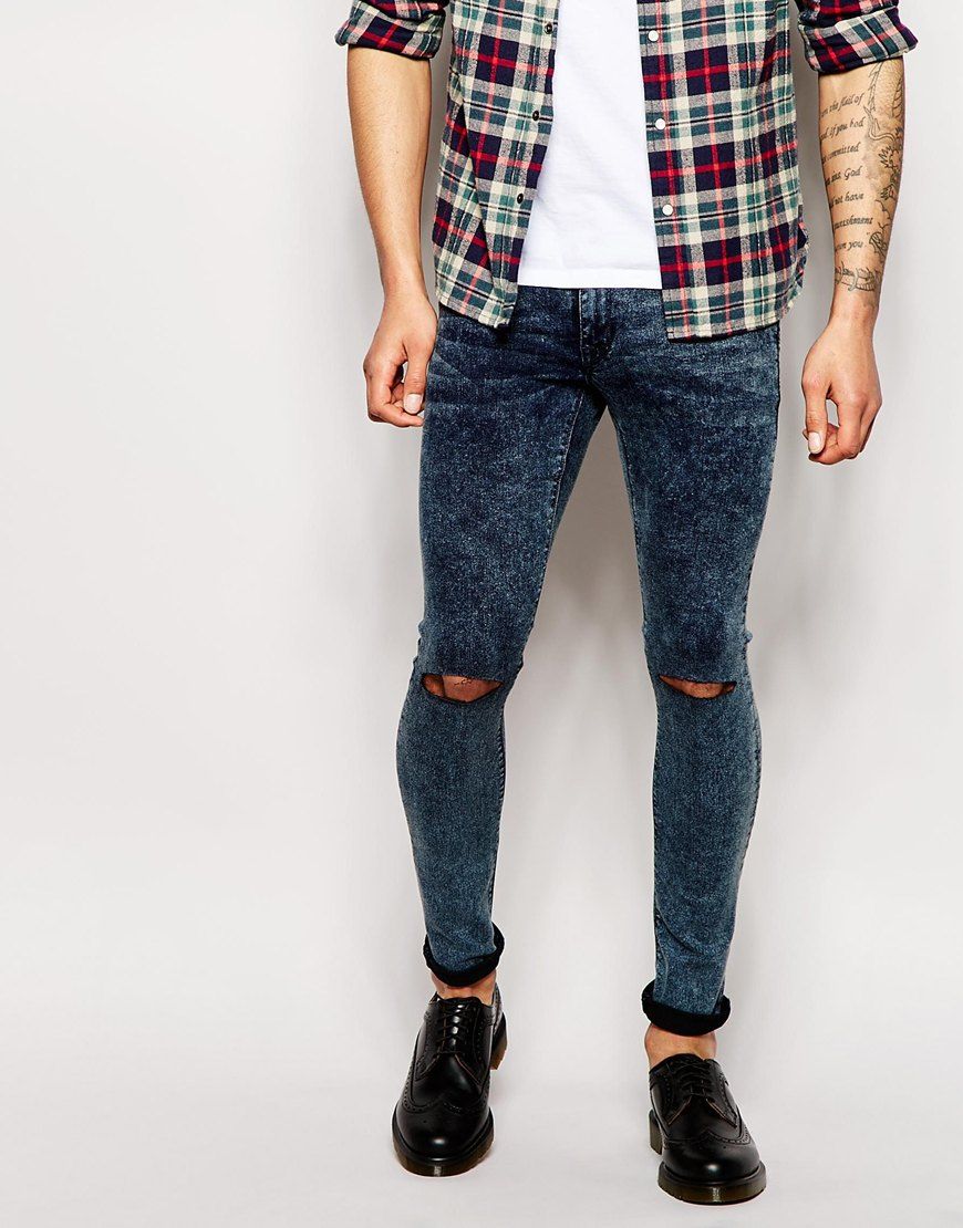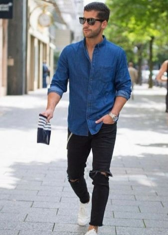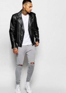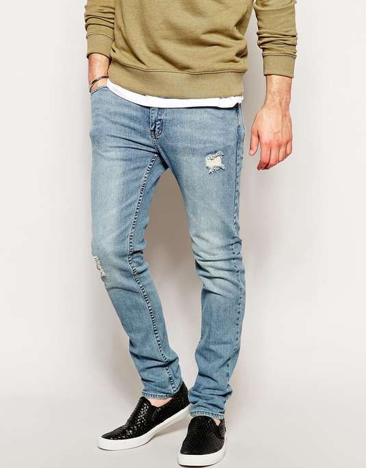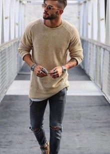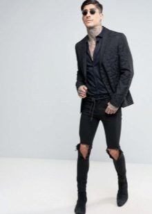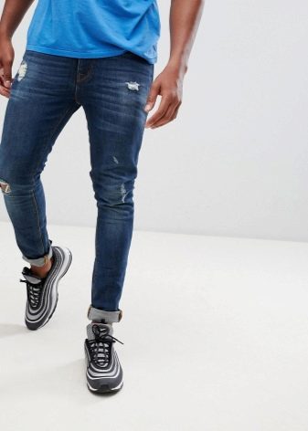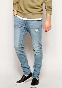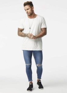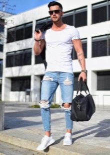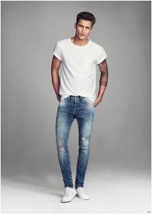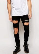 Les amateurs de style extravagant adoreront le skinny déchiré. Ils ont l'air très jeunes, car les éléments déchirés sont combinés avec succès avec une coupe étroite. Pour les hommes plus âgés, les modèles avec des éraflures sont plus appropriés. Il convient de noter que bien que les jeans déchirés soient très impressionnants, les porter tous les jours n'est pas une bonne idée.