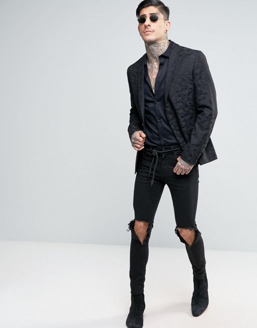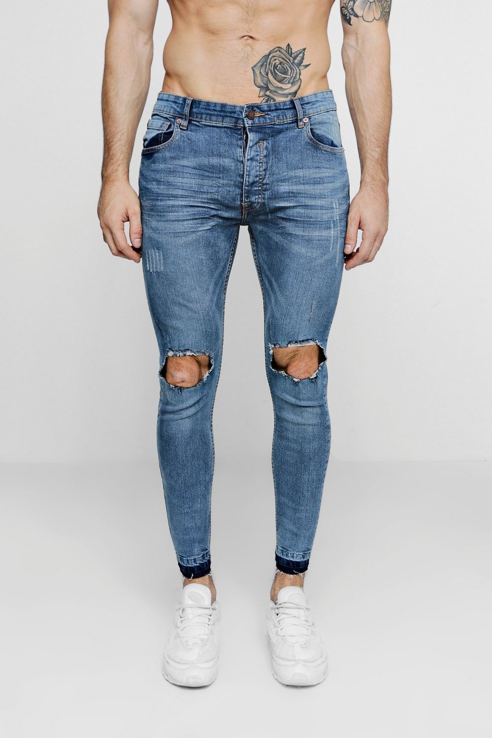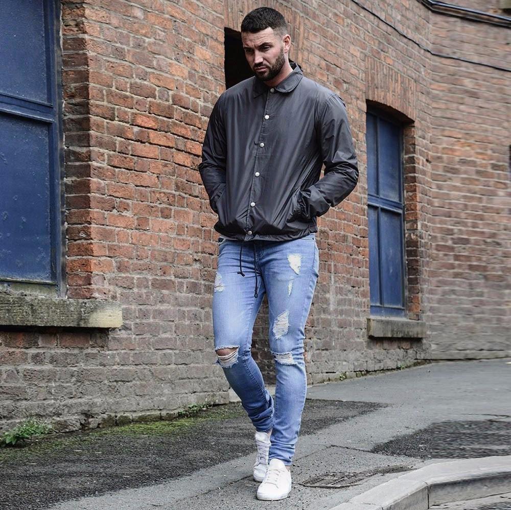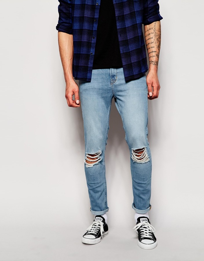 Les amateurs de style extravagant adoreront le skinny déchiré. Ils ont l'air très jeunes, car les éléments déchirés sont combinés avec succès avec une coupe étroite. Pour les hommes plus âgés, les modèles avec des éraflures sont plus appropriés. Il convient de noter que bien que les jeans déchirés soient très impressionnants, les porter tous les jours n'est pas une bonne idée.