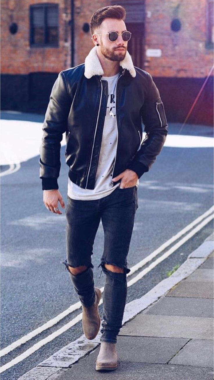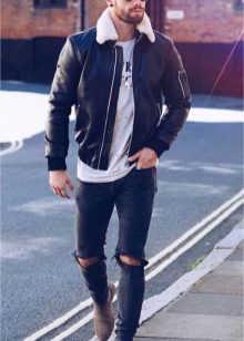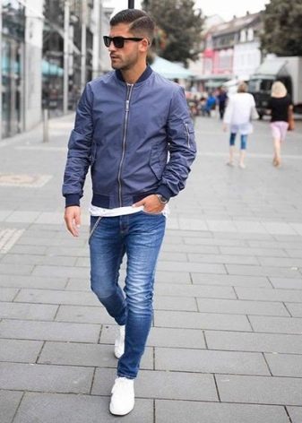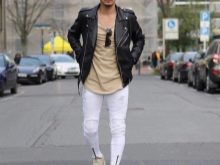 Parfait pour les maigres veste courte... De cette façon, des baskets ou des mocassins auront l'air appropriés. Une bonne combinaison est veste en cuir et chaussures hautes... Les jeans dans une telle situation sont rentrés dans des bottes.