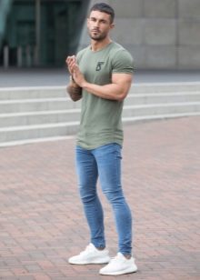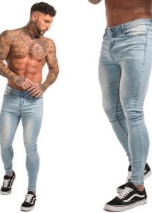Puisque les jeans skinny ont une coupe spéciale, les représentants du sexe fort devraient les choisir avec soin. Si la figure a des défauts, le modèle ne fera que les souligner. Il n'est pas recommandé de porter de tels pantalons pour les hommes en surpoids qui sont en surpoids à la taille et aux hanches, ainsi que trop minces. Il est nécessaire de sélectionner avec soin de tels jeans pour les athlètes aux muscles gonflés, ils doivent abandonner le décor et les coupes.
