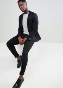 Il faut noter que il vaut mieux que les gars minces refusent de tels modèles, car la couleur noire et la coupe spécifique les rendront encore plus minces. Un choix doit être fait en faveur des modèles bleus ou gris clair.