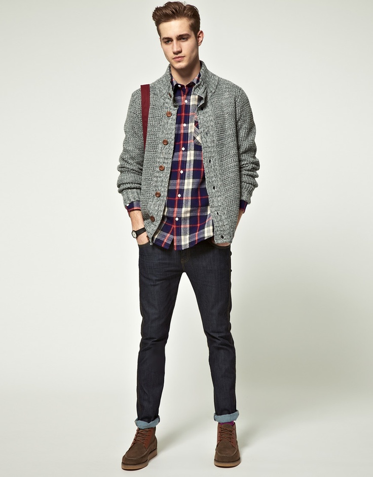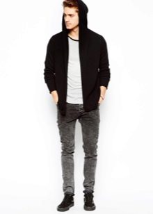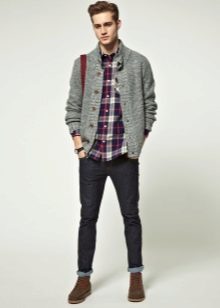 Vous pouvez porter un cardigan avec ce jean. Cependant, dans ce cas, il vaut mieux remplacer les chaussures de sport par des mocassins ou des richelieus. Vous pouvez porter des vêtements en plusieurs couches, par exemple, un T-shirt, une chemise et un pull. Vous pouvez utiliser les éléments séparément.