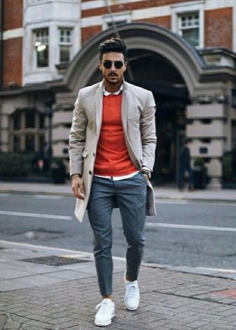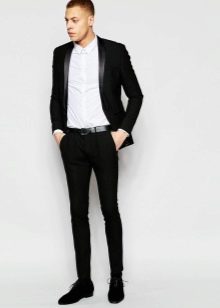 Pour un événement solennel, mais pas trop formel, ils conviennent skinny, avec lequel une chemise blanche est portée, ainsi qu'une ceinture chère. Cependant, dans les endroits où un code vestimentaire strict est attendu, il vaut mieux refuser une telle image.