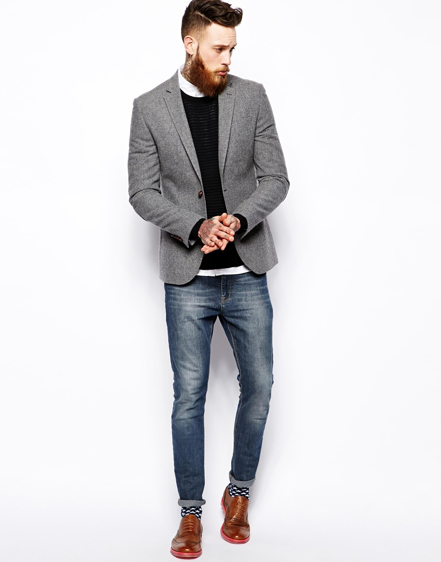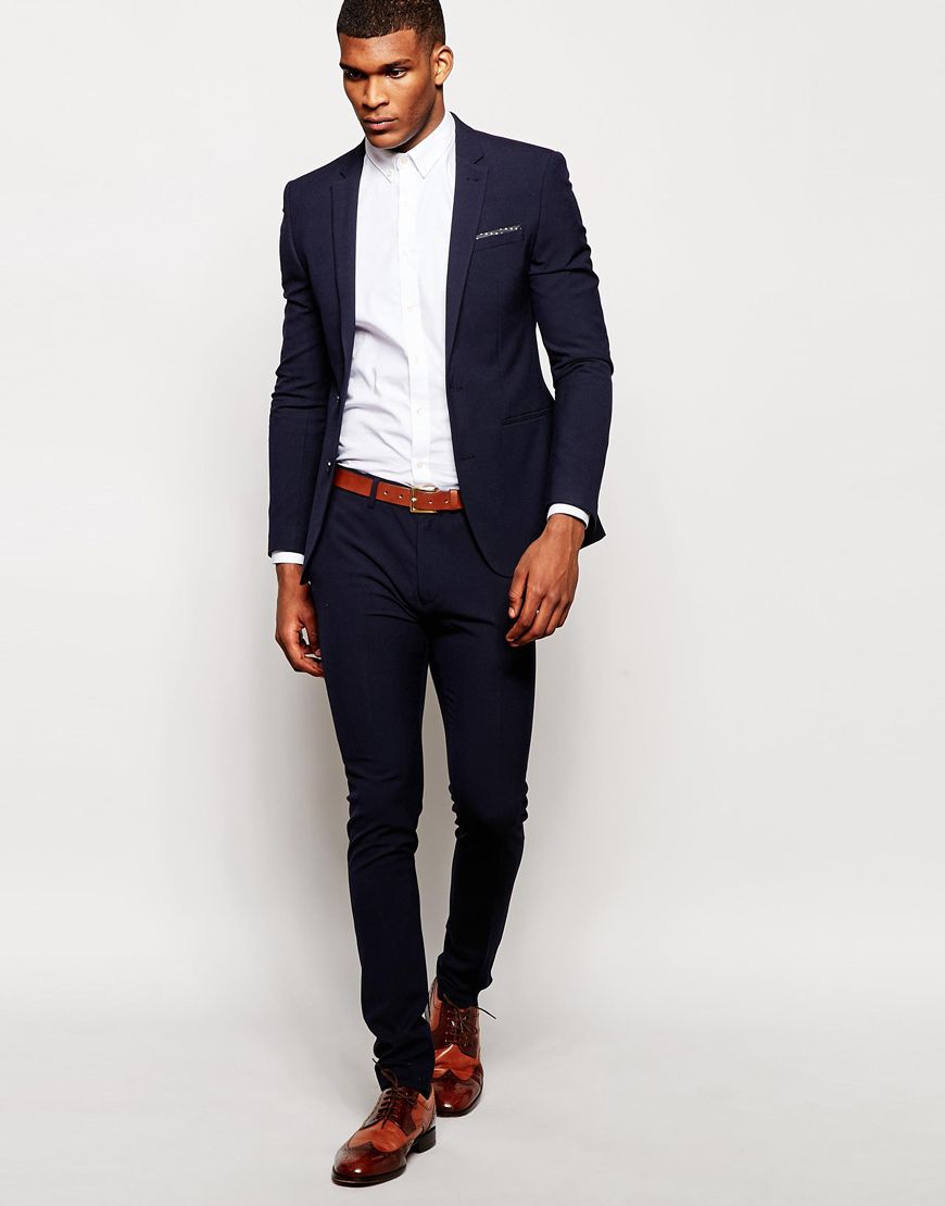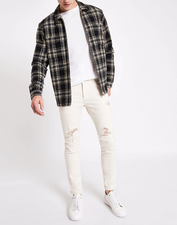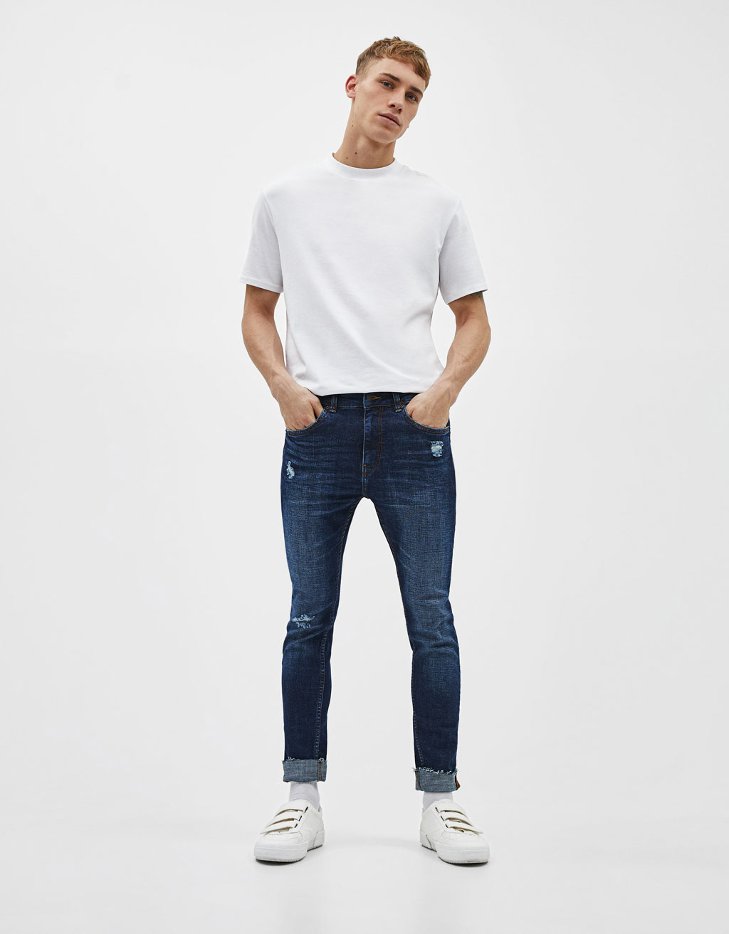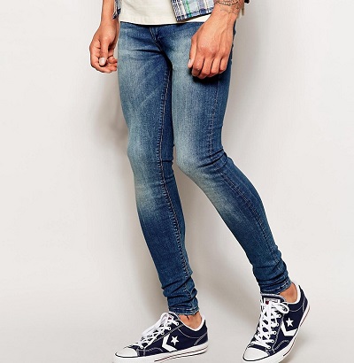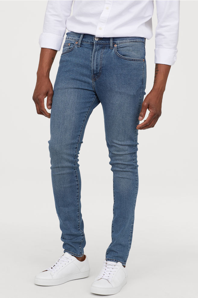 Le skinny super marqué est conçu pour les hommes aux jambes parfaitement droites, car chez eux toutes les imperfections seront particulièrement frappantes.