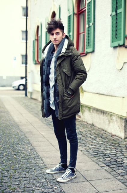 En hiver, les jeunes peuvent porter des jeans serrés avec des manteaux en peau de mouton volumineux et des doudounes. Le haut sera agrandi visuellement dans ce cas. Au printemps ou en automne, vous pouvez porter un manteau court aux couleurs apaisantes.