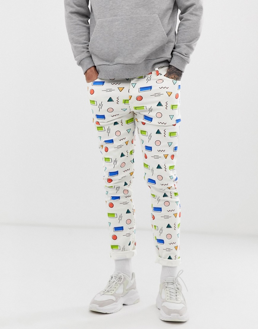 Les blancs maigres ont l'air festifs et se marient bien avec d'autres couleurs. De tels jeans nécessitent un entretien constant car ils sont très faciles à salir.