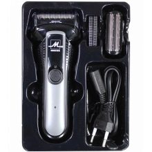 Επαναφορτιζόμενη, τριπλή ξυριστική μηχανή για άψογα λεία επιδερμίδα με ευκολία. Το σύστημα περιλαμβάνει δίχτυα ξυρίσματος και κεντρικό κοπτικό. Ο σχεδιασμός είναι μοντέρνος και υψηλής τεχνολογίας. Το αναδιπλούμενο κοπτικό βοηθά στη διαμόρφωση του μουστάκι, της γενειάδας. Η ξυριστική μηχανή είναι εξοπλισμένη με ειδική κλειδαριά, χάρη στην οποία μπορείτε να καθαρίσετε γρήγορα τον μηχανισμό ξυρίσματος.