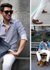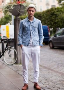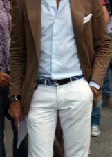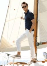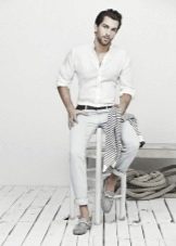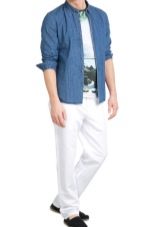Ο κύριος κίνδυνος των λευκών παντελονιών είναι ότι, με εμφανή ορατότητα, καμαρώνουν όλους τους ατυχείς συνδυασμούς και τις ατέλειες του συνόλου. Επομένως, είναι τόσο σημαντικό για έναν άντρα να ξέρει με τι να φορέσει, πώς να συνδυάσει το λευκό παντελόνι στο σωστό χρώμα. Μια άψογη εμφάνιση με λευκά παντελόνια είναι εύκολο να συνδυαστεί για χαλάρωση. Ένα μπλε blazer, λευκά chinos και άνετα παπούτσια είναι μια εξαιρετική επιλογή για ένα τολμηρό, casual σύνολο.