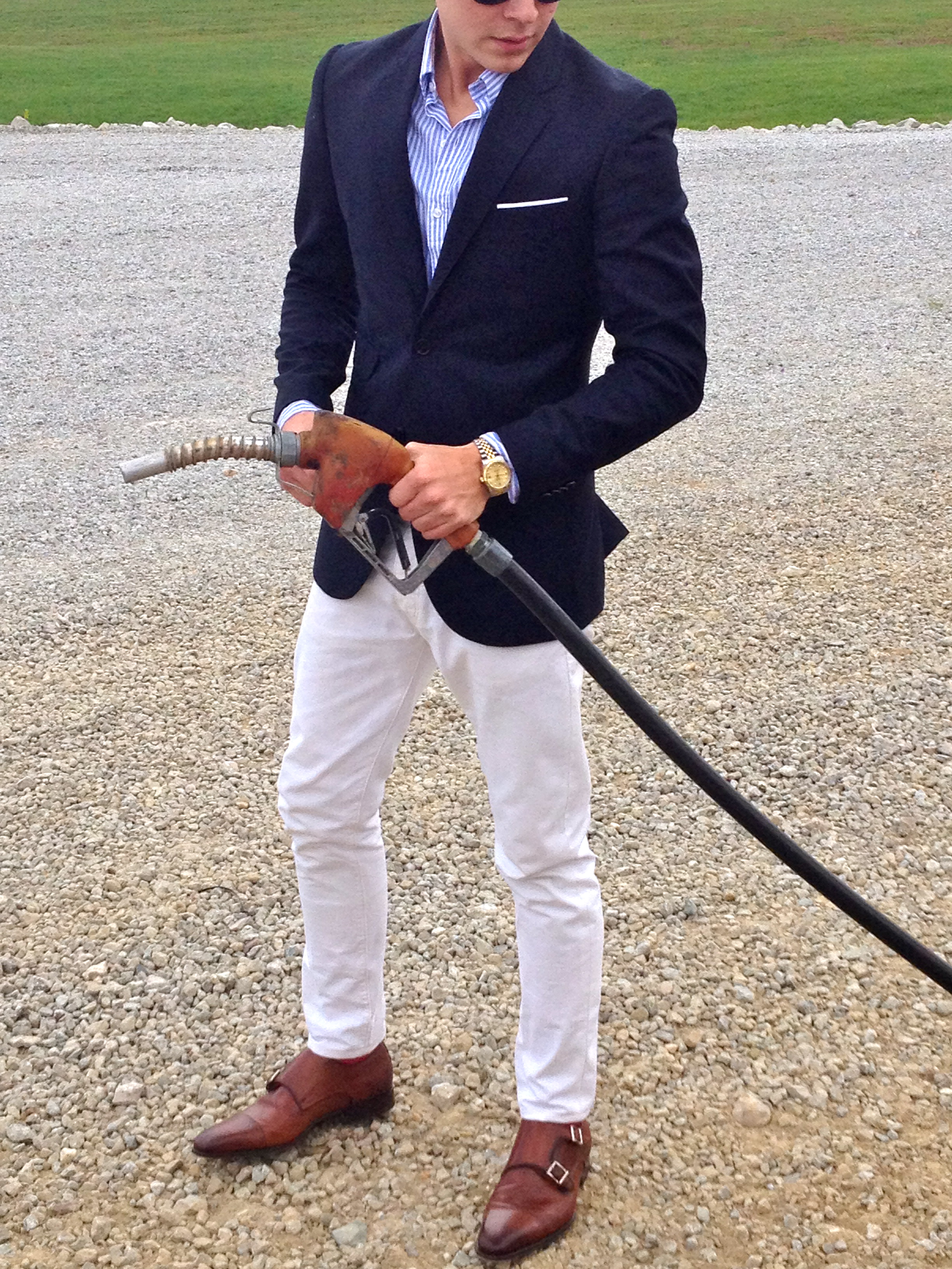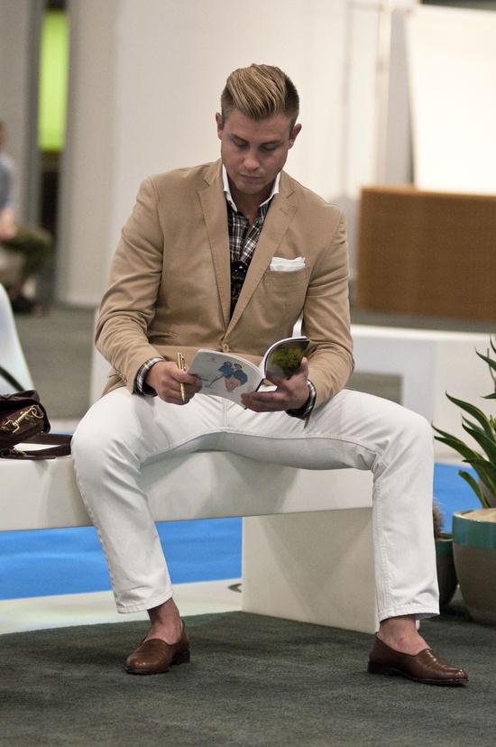 - αξιοσημείωτο, είναι αδύνατο να λείπει ένας άντρας με λευκά παντελόνια.