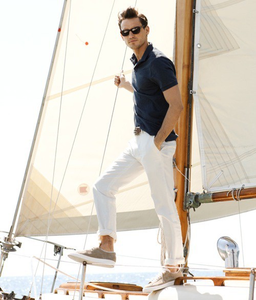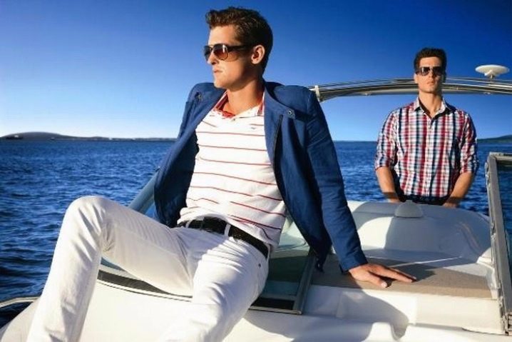 Για να δημιουργήσετε μια ναυτική διάθεση Συνδυάστε ένα μπλε μπλέιζερ, ανοιχτόχρωμο παντελόνι και μπλουζάκια με μικρές κόκκινες πινελιές... Ένα υπέροχο tandem είναι ένα μαύρο μπλουζάκι και ελαφρύ φορτίο, πάνινα παπούτσια ή αθλητικά παπούτσια μπορούν να το συμπληρώσουν. Λευκά τζιν, φωτεινό πουκάμισο, μπλουζάκι ή γιλέκο είναι εξαιρετικές παραλλαγές για μια καλοκαιρινή έξοδο.