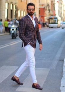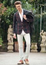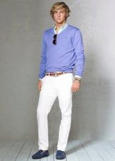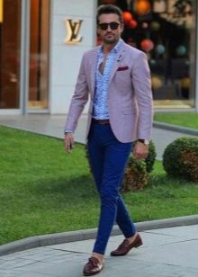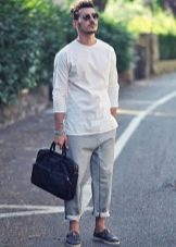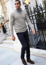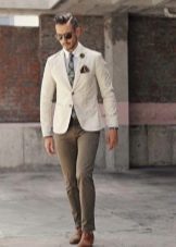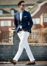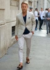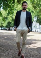 Ένα τέτοιο σύνολο είναι ιδανικό τόσο για επαγγελματική συνάντηση όσο και για πάρτι με φίλους. Το μόνο πράγμα σε αυτή την περίπτωση είναι να φοράτε κλασικά παπούτσια, με αθλητικά παπούτσια και άλλα αθλητικά παπούτσια, η εικόνα θα αποδειχθεί γελοία.