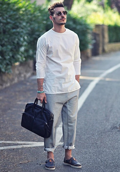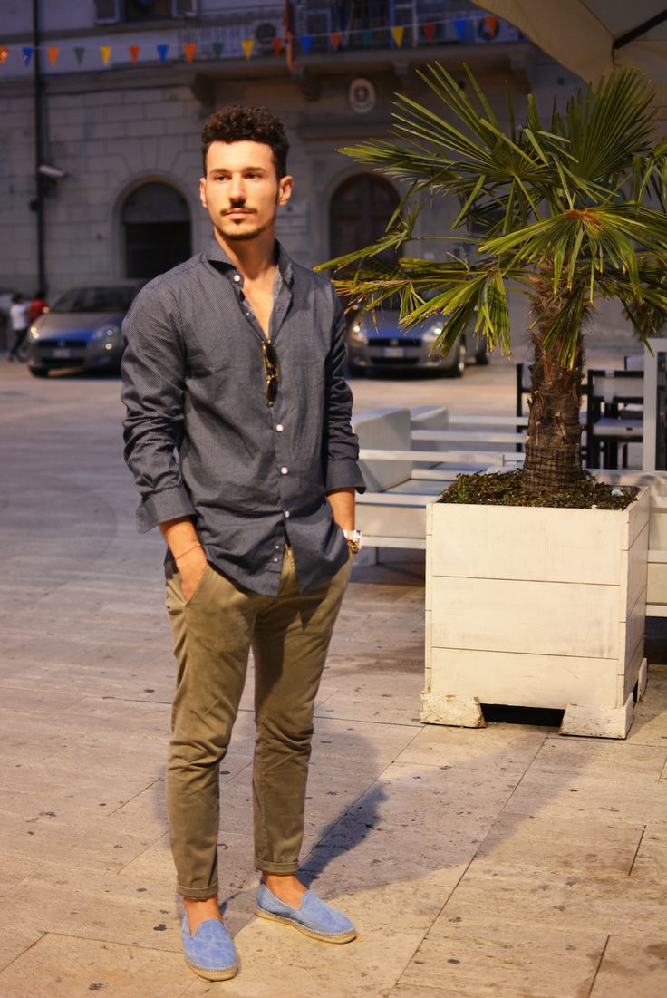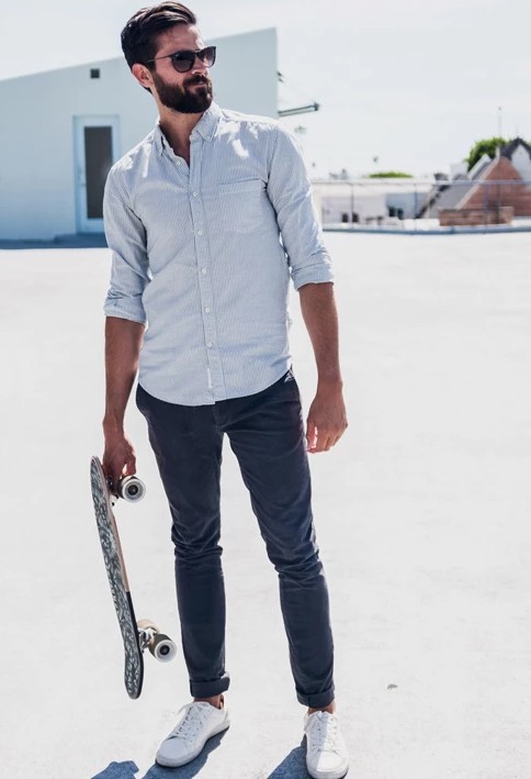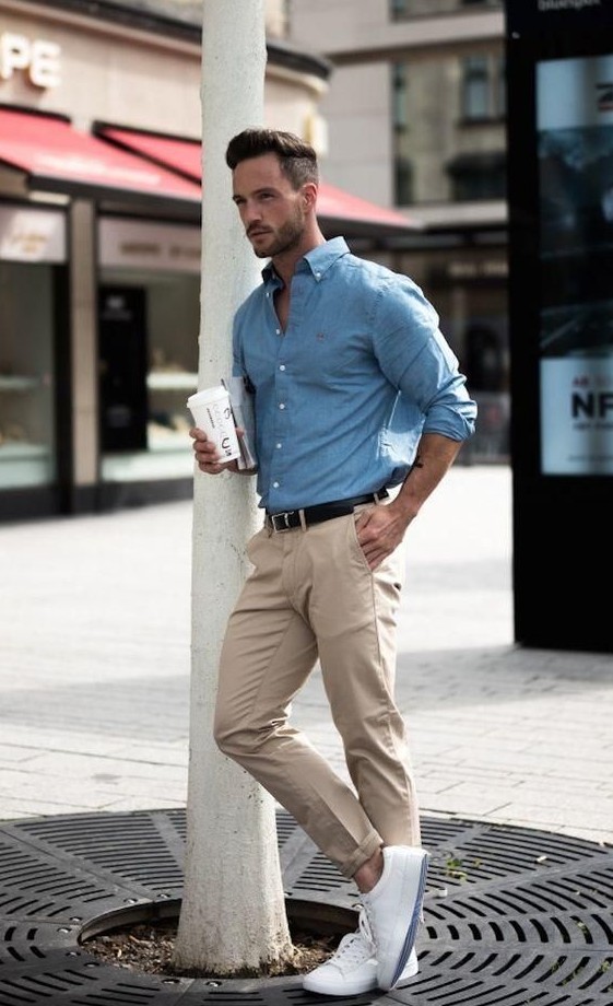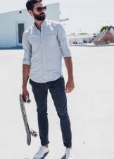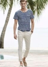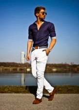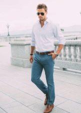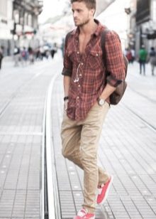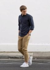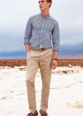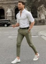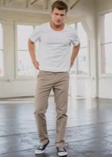 Τα αντρικά chinos χαρακτηρίζονται από ευελιξία και σχεδόν πάντα φαίνονται ενδιαφέροντα, ανανεώνοντας την εικόνα ενός άντρα. Αυτό τους καθιστά το αγαπημένο μοντέλο πολλών δημιουργικών ανθρώπων, διευθυντών, επιχειρηματιών και μοντέρνων θαμώνων. Για να δείχνεις πάντα υπερβολική, αυτά τα παντελόνια πρέπει να συνδυάζονται σωστά με την υπόλοιπη γκαρνταρόμπα σου. Έτσι, το καλοκαίρι, τα chinos είναι καλό να φοριούνται με ένα πουκάμισο (αν το μανίκι είναι μακρύ, πρέπει να είναι μαζεμένο) και μπλουζάκια με μια προσαρμοσμένη περικοπή. Είναι σημαντικό να δώσετε προσοχή στο γεγονός ότι το μήκος του παντελονιού δεν κρύβει εντελώς τις γραμμές των μπροστινών θυλάκων του παντελονιού.