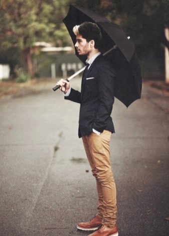Εν για τους νέους, τα μοντέλα με ελαφρώς κωνική σιλουέτα ταιριάζουν καλύτερα, για μεσήλικες κύριοι - μια μονοφωνική έκδοση σε κλασικό σχέδιο.