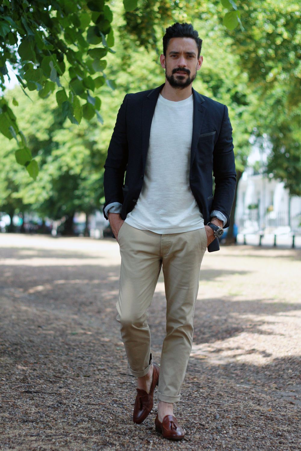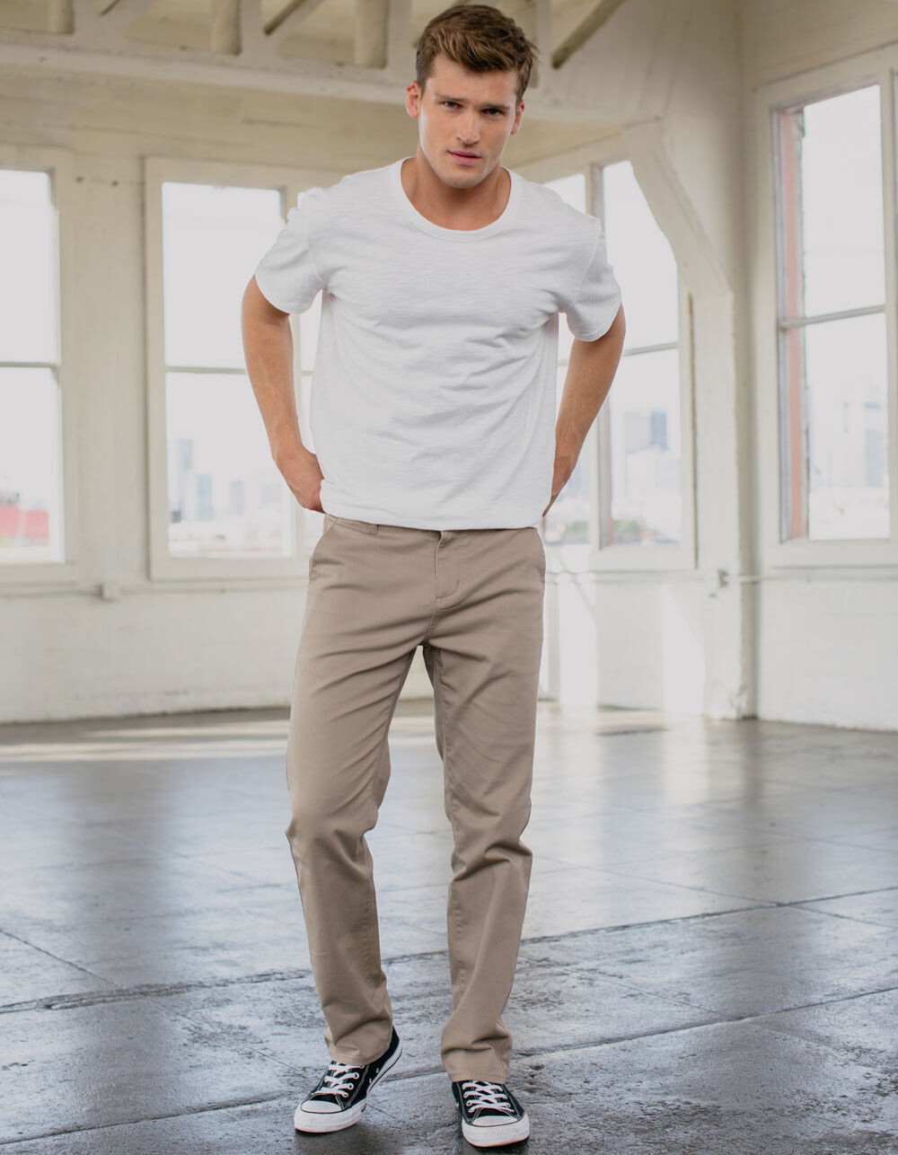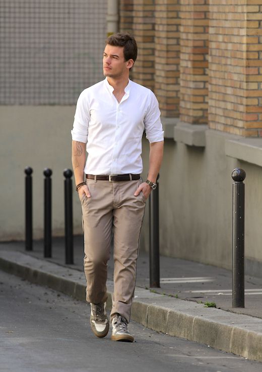 Δεδομένου ότι το επιχειρηματικό-casual στυλ είναι πλέον στη μόδα, τα κλασικά ίσια chinos μπορούν να συμπληρωθούν με ένα αυστηρό πουκάμισο, ένα εφαρμοστό σακάκι, ένα μαύρο παπιγιόν ή γραβάτα.
