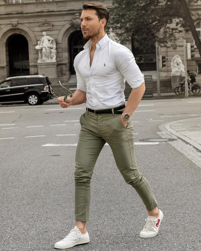 Χάρη στα κομψά αντρικά chinos, μπορείτε να πειραματιστείτε με ασφάλεια με διαφορετικές εμφανίσεις, τονίζοντας την ατομικότητά σας. Προς το παρόν, υπάρχουν πολλά μοντέλα με τα οποία μπορείτε να δημιουργήσετε τα ακόλουθα μοντέρνα τόξα.