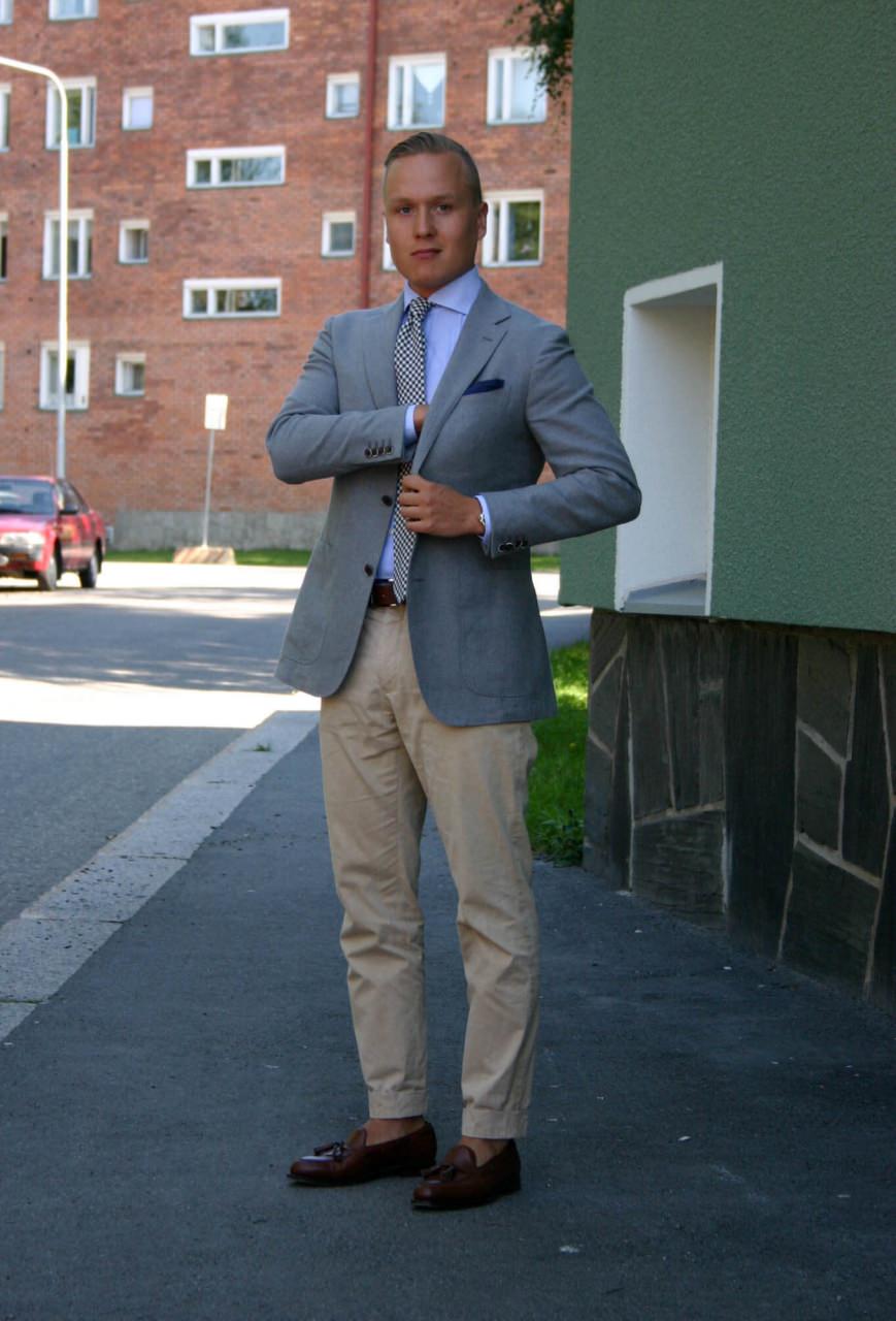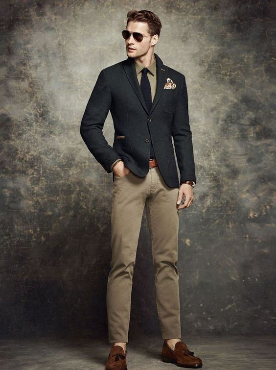 Εάν ο κύριος πρόκειται να παρευρεθεί σε μια ημιεπίσημη εκδήλωση, τότε στην εικόνα πρέπει να συγκρατήσετε ελαφρώς το κακό άρωμα και να επιλέξετε κλασικά παντελόνια σε σκούρο καφέ απόχρωση. Τα χακί παντελόνια είναι επίσης μια καλή επιλογή, θα δώσουν στο τόξο μια κομψή σοβαρότητα και στυλ. Όσον αφορά την επιλογή δευτερευόντων πραγμάτων όπως ζώνη, γραβάτα και πουκάμισο, εξαρτάται σε μεγάλο βαθμό όχι μόνο από τις προσωπικές προτιμήσεις, αλλά και από τις ιδιαιτερότητες της εποχής, της εποχής και της τοποθεσίας ενός τέτοιου γεγονότος.