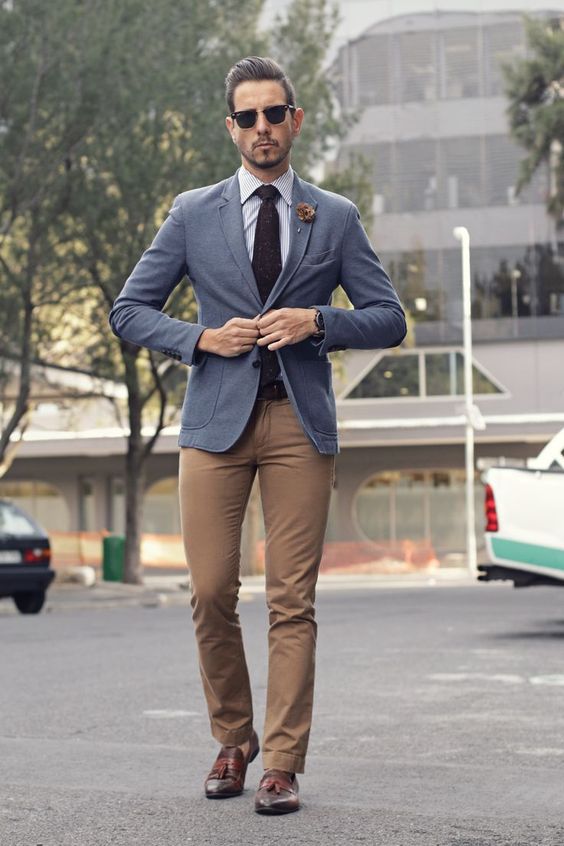 Συμπληρώστε τέλεια την εμφάνιση με μια γραβάτα και μια δερμάτινη ζώνη σε καφέ αποχρώσεις, αυτό θα δώσει στην εμφάνιση ταυτόχρονα μια συγκρατημένη και μοντέρνα εμφάνιση.