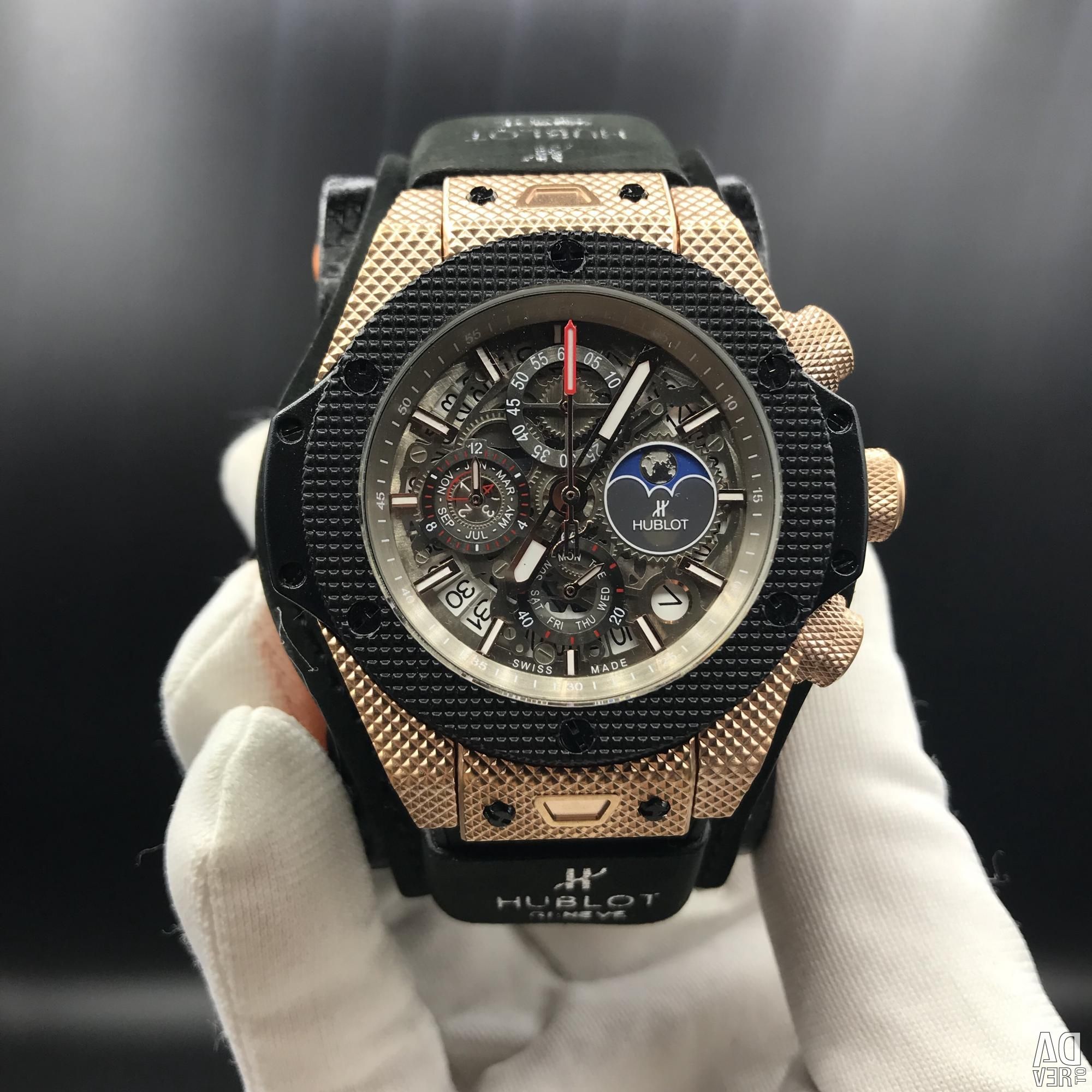 Συλλογή πολυτέλειας μηχανικό ρολόι με αυτόματο τύλιγμα. Δέρμα λουρί με βάση το καουτσούκ παρουσιάζεται σε μεγάλη ποικιλία χρωμάτων - από βαθύ μπλε και πορτοκαλί έως κλασικό μαύρο. Το κύριο χαρακτηριστικό των μοντέλων είναι ο σκελετωμένος επιλογέας, μέσω του οποίου είναι ορατή η εσωτερική δομή του προϊόντος. Κατηγορία βαθμονόμησης HUB1770. Επίπεδο αντοχής στο νερό WR 100. Το εξάρτημα εμφανίζει την ώρα, την ημερομηνία και τη φάση του φεγγαριού. Πλαίσιο κατασκευασμένο από ροζ ή λευκό χρυσό. Το πλαίσιο είναι στολισμένο με διαμάντια ή πολύτιμους λίθους. Ο κρύσταλλος ζαφείρι με αντιανακλαστική επίστρωση είναι εξαιρετικά ανθεκτικός στις γρατζουνιές. Ο καθολικός σχεδιασμός επιτρέπει να φοράτε ρολόγια αυτής της σειράς όχι μόνο για άνδρες, αλλά και για γυναίκες.