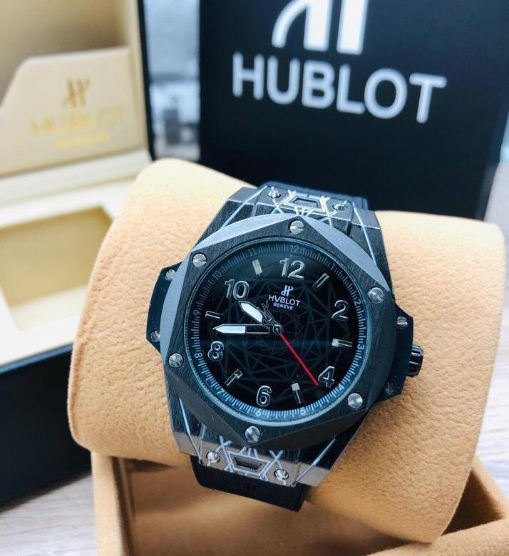 Το σήμα κατατεθέν του ρολογιού η εταιρεία είναι ένα τεράστιο σώμα, σε σχήμα αερόσακου, ένα φαρδύ, αλλά εντελώς επίπεδο βενζέλ και μεγάλες βίδες τιτανίου ακριβώς στο σώμα, τα οποία είναι ορατά με γυμνό μάτι. Φυσικά, υπάρχουν συλλογές με πιο κλασικά σχέδια, αλλά το παραδοσιακό στυλ Hublot διατηρείται ακόμη και σε αυτές.