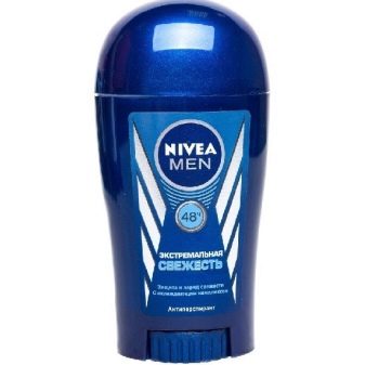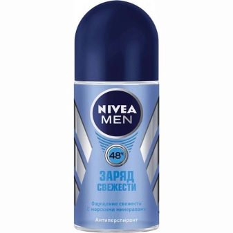 Αποσμητικό για άνδρες Το Nivea Men απευθύνεται σε άτομα με διαφορετική ένταση ιδρωτοποιών αδένων. Έχει σχεδιαστεί με γνώμονα τα χαρακτηριστικά και τις ανάγκες του ενήλικα και παρέχει πλήρη εξάλειψη της μυρωδιάς του ιδρώτα και των σχετικών προβλημάτων. Αλλά η σύνθεσή τους δεν μπορεί να ονομαστεί εντελώς καθολική. Το αλκοόλ που περιέχεται στα αποσμητικά είναι αρκετά ξηρό για το δέρμα και δεν είναι κατάλληλο για εφηβεία.
