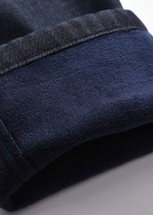 Επιπλέον, πολλοί κατασκευαστές χρησιμοποιούν τζιν από στριμμένη φυσική ίνα βαμβακιού για θερμική προστασία. Φυσικά, αυτό δεν είναι ποδήλατο ή μαλλί, αλλά το υλικό είναι πυκνό και ζεστό, και αν είναι βουρτσισμένο, τότε από μέσα το τζιν θα είναι άνετο, απαλό και ζεστό και η εξωτερική του πλευρά δεν θα διαφέρει από τα συνηθισμένα παντελόνια αυτός ο τύπος.