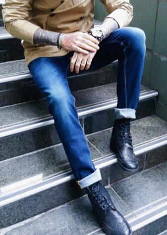 - Είναι επιθυμητό να φοράτε skinny για άνδρες με λεπτή σιλουέτα, παρά το γεγονός ότι μια υψηλή μέση βοηθά στην απόκρυψη του υπερβολικού όγκου σε αυτό το μέρος του σώματος. Κυρίως, το στυλ ταιριάζει σε νέους που προσπαθούν πάντα να φαίνονται μοντέρνοι και υπερβολικοί. Με υψηλή δραστηριότητα και κινητικότητα, οι άντρες προτιμούν να επιλέγουν μοντέλα stretch που δεν εμποδίζουν την κίνηση.