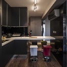 - Σε όποιον αρέσει περισσότερο ένα σκούρο, οικείο χρώμα, θα πρέπει να ρίξει μια πιο προσεκτική ματιά σε τέτοιες λύσεις. Όλα συνδυάζονται με τα πάντα, επομένως η κουζίνα δεν μοιάζει με εξωγήινο στοιχείο σε αυτόν τον συγχωνευμένο χώρο. Εάν ένα άτομο ζει στο διαμέρισμα, μπορεί να κάνει χωρίς τραπέζι φαγητού, αυτό το περιοδικό θα είναι αρκετό. Αλλά μπορείτε να φανταστείτε έναν πάγκο μπαρ ή ένα πτυσσόμενο τραπέζι στον τοίχο απέναντι από την κουζίνα.