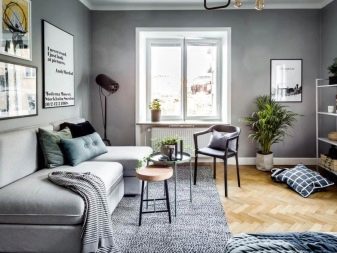 Οι ανοιχτές και κρύες αποχρώσεις διευρύνουν το χώρο όσο το δυνατόν περισσότερο, αλλά μπορεί να γίνει κρύο από αυτό. Οι ζεστές πινελιές διακόσμησης θα βοηθήσουν (για παράδειγμα, κίτρινα μαξιλάρια και ένα βάζο του ίδιου χρώματος στο τραπέζι). Τα σκούρα χρώματα, φυσικά, προσθέτουν νουάρ στο δωμάτιο, αλλά μπορεί να συρρικνωθεί σημαντικά - για τους ανθρώπους που ζουν μόνοι σε ένα διαμέρισμα, αυτή η επιλογή δεν είναι τόσο κακή, για μια οικογένεια δεν είναι η πιο κερδοφόρα. Οι ζεστές παστέλ αποχρώσεις μπορούν να είναι μια συμβιβαστική λύση.