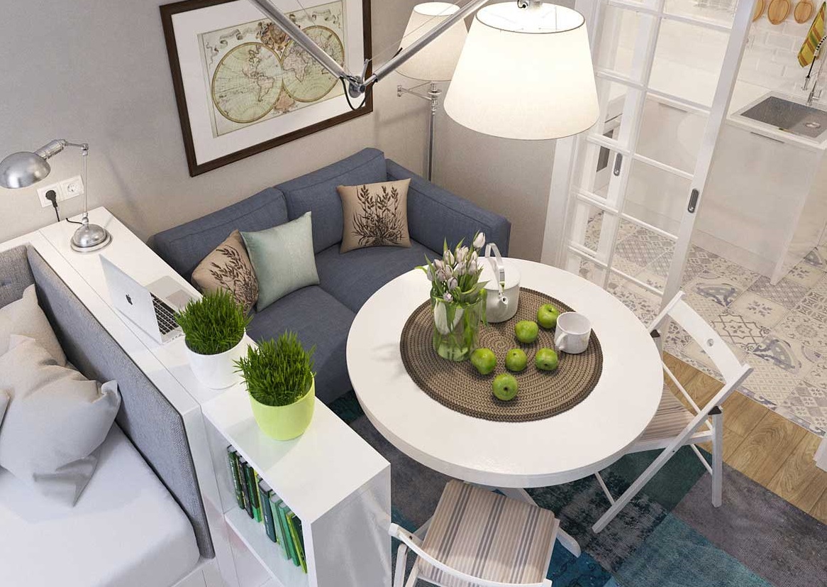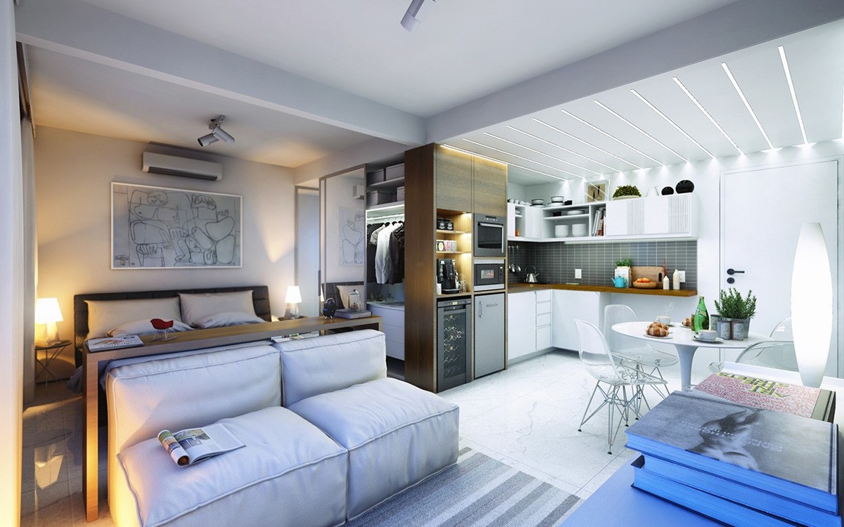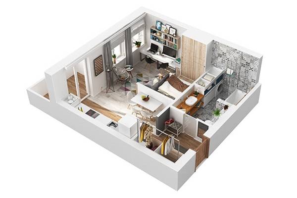 Αυτός ο τύπος διαμερίσματος είναι μια πιο κερδοφόρα έκδοση του στούντιο, διαθέτει ένα απομονωμένο υπνοδωμάτιο, το οποίο, ωστόσο, μπορεί να γίνει φυτώριο, γραφείο ή γυμναστήριο στο σπίτι. Η άνεση του δωματίου θα εξαρτηθεί από τη χωροθέτηση της συνδυασμένης περιοχής.