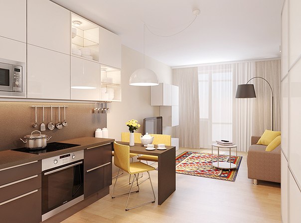 Όλα αυτά τα παραδείγματα απεικονίζουν τις λύσεις μιας συνδυασμένης κουζίνας και καθιστικού: και αυτό είναι κατανοητό, επειδή είναι ευκολότερο να εξοπλιστεί ένα απομονωμένο δωμάτιο παρά ένας συνδυασμένος χώρος. Αλλά είναι προφανές ότι υπάρχουν πολλές επιλογές, και κάθε μία είναι διαθέσιμη σε επανάληψη.