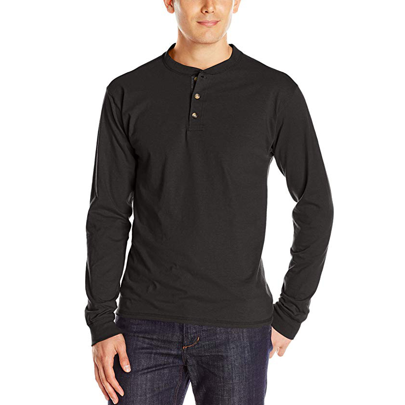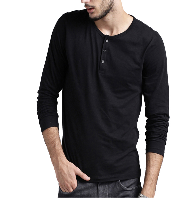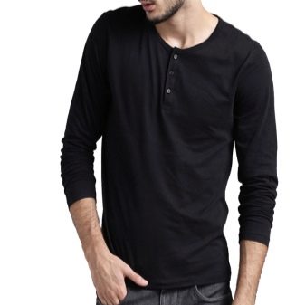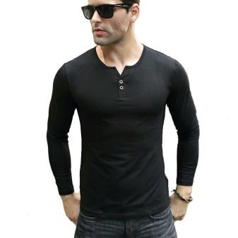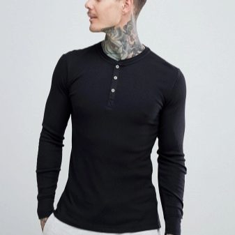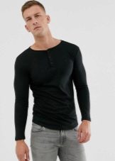 - Henley. Ένα τέτοιο προϊόν είναι συχνότερα ραμμένο από αρκετά λεπτό βαμβάκι. Τα μανίκια με μπλουζάκια είναι μακριά. Δεν έχει γιακά, αλλά υπάρχει μια κάθετη τομή στο λαιμό. Επιπλέον, διαθέτει κουμπιά ή κουμπιά. Ένα τέτοιο μακρύ μπλουζάκι, που είναι μαύρο, σε συνδυασμό με τζιν ή κοτλέ παντελόνι, μπορεί να τονίσει την ανακούφιση του ανδρικού σώματος.Μπορείτε να αναιρέσετε τα δύο πάνω κουμπιά ή κουμπιά για πιο εντυπωσιακή εμφάνιση.