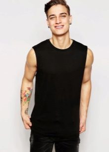 Υπάρχει μια άλλη έκδοση ενός τέτοιου αμάνικου μπλουζιού - αυτός είναι ένας παλαιστής. Διαφέρει από την προηγούμενη έκδοση στο ότι οι ιμάντες που βρίσκονται στο πίσω μέρος δεν πηγαίνουν ευθεία, αλλά συνδέονται ακριβώς στη μέση της πλάτης. Συνήθως τέτοια προϊόντα έχουν επιπλέον σχέδια, για παράδειγμα, με κρανίο ή με αγαπημένο αθλητή.