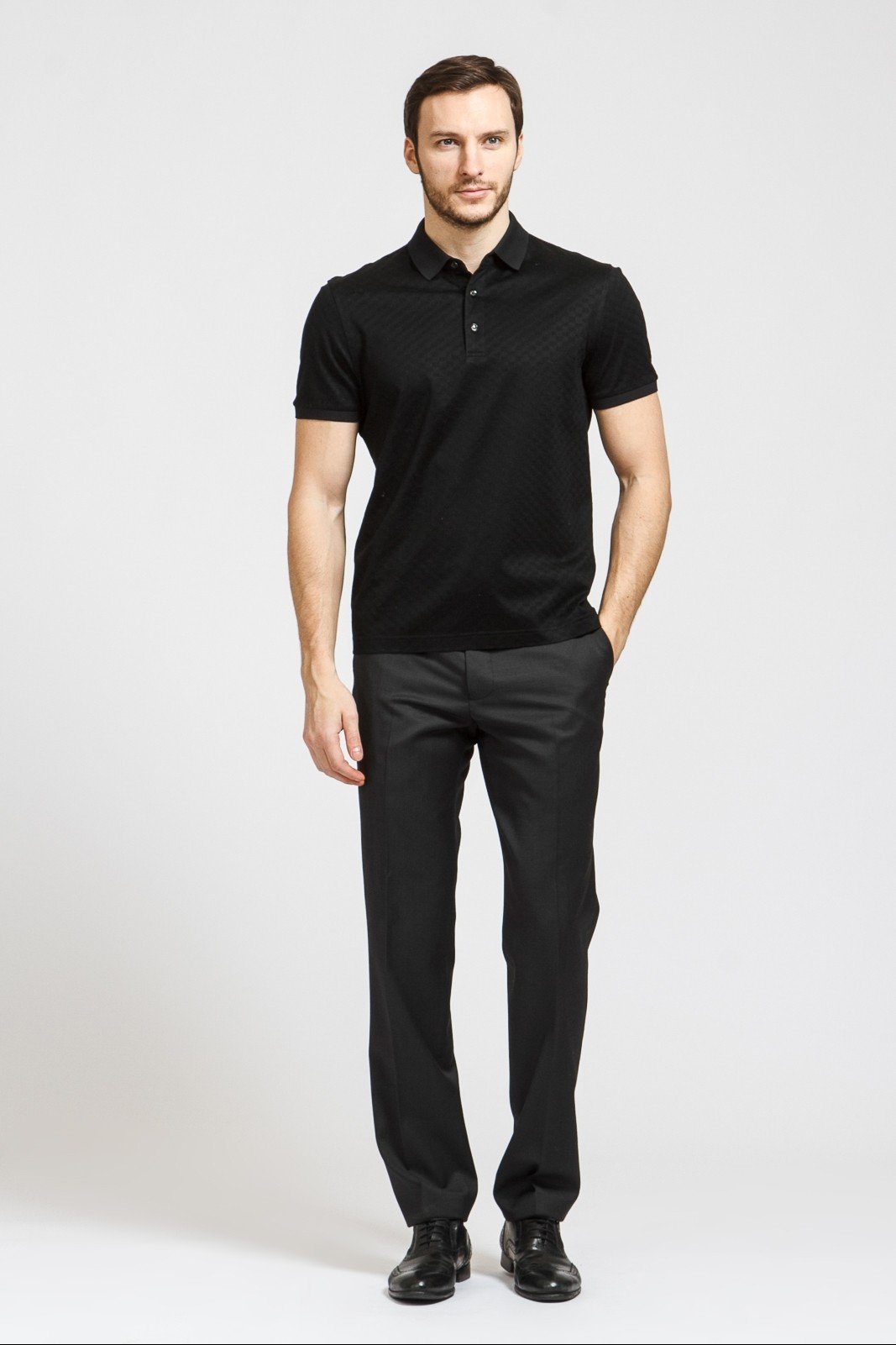 Για αρκετές δεκαετίες, αυτή η έκδοση του μαύρου μπλουζού ήταν στην κορυφή της δημοτικότητας. Έχει γιακά πουκάμισου, μικρά κουμπιά και κοντό μανίκι. Ένα υπερμεγέθη μπλουζάκι φαίνεται καλύτερα.