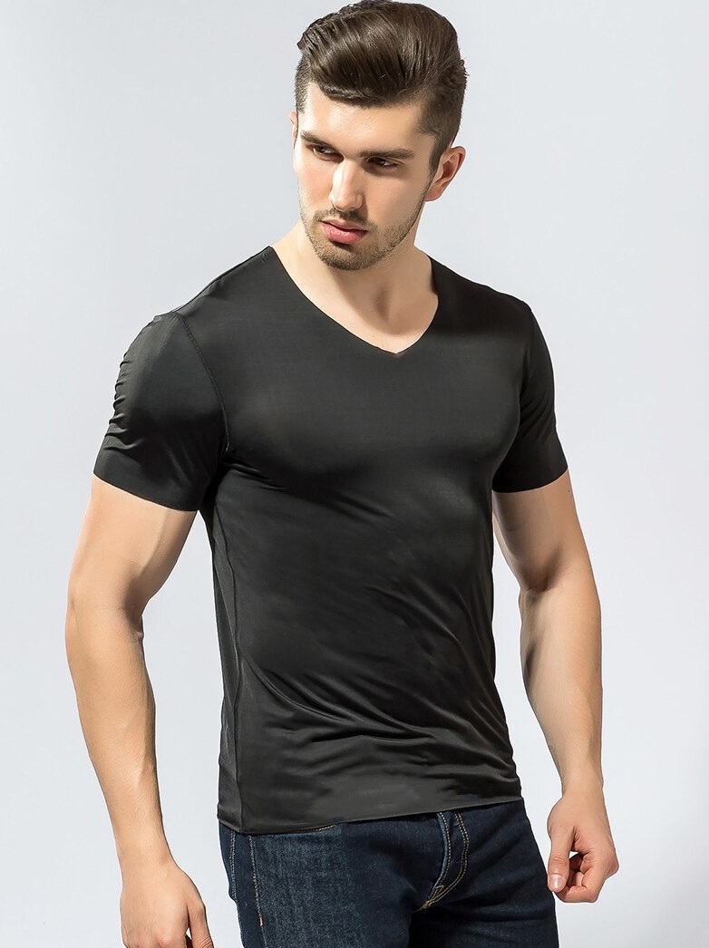 - Βισκόζη... Τα μπλουζάκια από αυτό το υλικό είναι ιδανικά για το καλοκαίρι. Σε αυτά, ένας άντρας θα αισθάνεται όχι μόνο άνετα, αλλά και εύκολα οποιαδήποτε στιγμή του χρόνου. Μετά από όλα, η βισκόζη διαφέρει από τα άλλα υλικά όσον αφορά την υγιεινή.