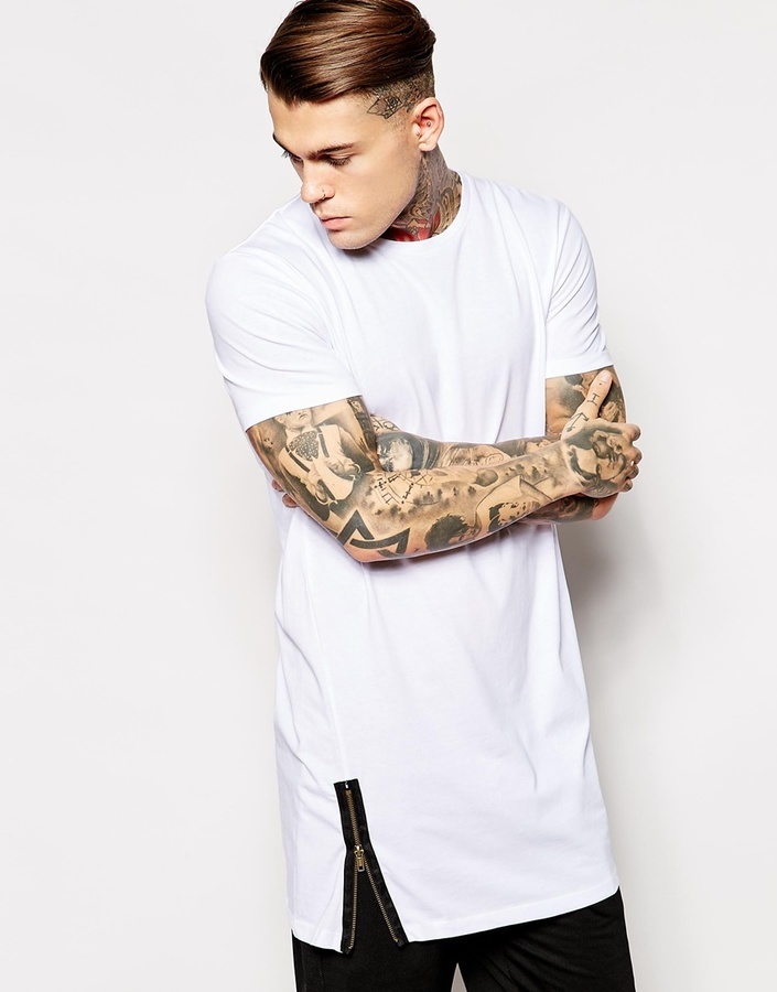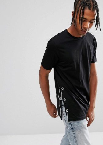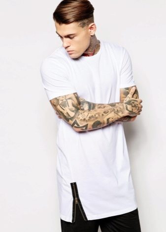 - Μπλουζάκια με πλευρικές σχισμές - αυτή είναι μια άλλη δημοφιλής επιλογή που πρέπει να "εγκατασταθεί" σε κάθε αντρική ντουλάπα. Τέτοιες εικόνες γίνονται αμέσως μόδα. Μπλουζάκια με σχισμές ταιριάζουν πολύ με παντελόνια και παντός τύπου τζιν. Τα μοντέλα με κουκούλες φαίνονται ενδιαφέροντα, πράγμα που σημαίνει ότι πρέπει να τους δώσετε προσοχή.Συνήθως, αυτά τα μπλουζάκια είναι κατασκευασμένα από φανέλα, βισκόζη και βαμβάκι.