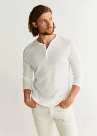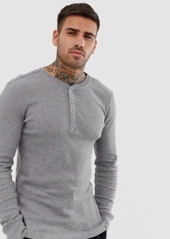 - Henley -Αυτό είναι ένα στενό μπλουζάκι με στρογγυλό λαιμό και ένα ζευγάρι κουμπιά πάνω του, μπορεί να έχει μακρύ και κοντό μανίκι.