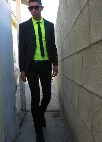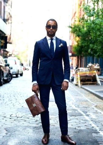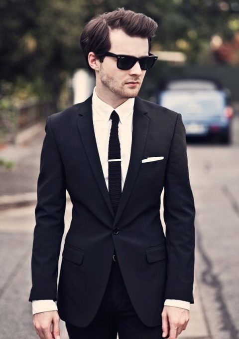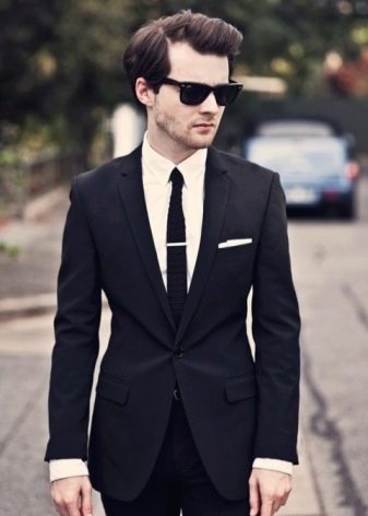 Το win-win είναι συνήθως σε αντίθεση συνδυασμοί μαύρου (ή σκούρου μπλε) και λευκού χρώματος... Για παράδειγμα, μια ευπαρουσίαστη και στιβαρή εικόνα θα προκύψει αν συνδυάσετε ένα χιόνι-λευκό πουκάμισο, ένα μαύρο κοστούμι παντελονιού με ένα εφαρμοστό σακάκι και μια σκούρα γραβάτα, που συμπληρώνεται από μια διακριτική ανάγλυφη υφή. Τα γωνιακά γυαλιά ηλίου μπορούν να χρησιμοποιηθούν ως προαιρετικό αξεσουάρ.