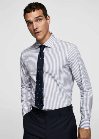 Οι ρίγες στο πουκάμισο επιτρέπεται να συνδυάζονται με τις ρίγες στη γραβάτα. Είναι σημαντικό να βεβαιωθείτε ότι τα σχέδια δεν έχουν το ίδιο μέγεθος. Επιτρέπεται επίσης ο συνδυασμός λωρίδων με διαφορετικό προσανατολισμό. Για παράδειγμα, τα πουκάμισα με κάθετες ρίγες θα φαίνονται καλά παράλληλα με μια ριγέ γραβάτα, η οποία έχει μοτίβο οριζόντια ή διαγώνια. Έτσι, θα είναι δυνατή η δημιουργία μιας σαφούς και ελκυστικής αντίθεσης και η ανάδειξη καθενός από τα στοιχεία της τουαλέτας.