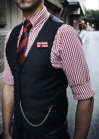 - Αν θέλετε να επιλέξετε ένα αξεσουάρ για καρό πουκάμισο, χωρίς αμφιβολία, θα πρέπει να πάρετε ένα προϊόν με μεγάλο μοτίβο (μπορεί επίσης να υπάρχει σε ένα μαντήλι). Ωστόσο, οι έντονες αντιθέσεις θα είναι περιττές εδώ - απαιτείται μέτρο σε όλα.