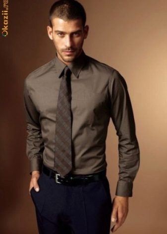 - Χρωματισμός του κιτ με ανοιχτό καφέ πουκάμισο, ακολουθήστε τον κανόνα: μπορεί να συνδυαστεί αποκλειστικά με σκούρο καφέ γραβάτα.