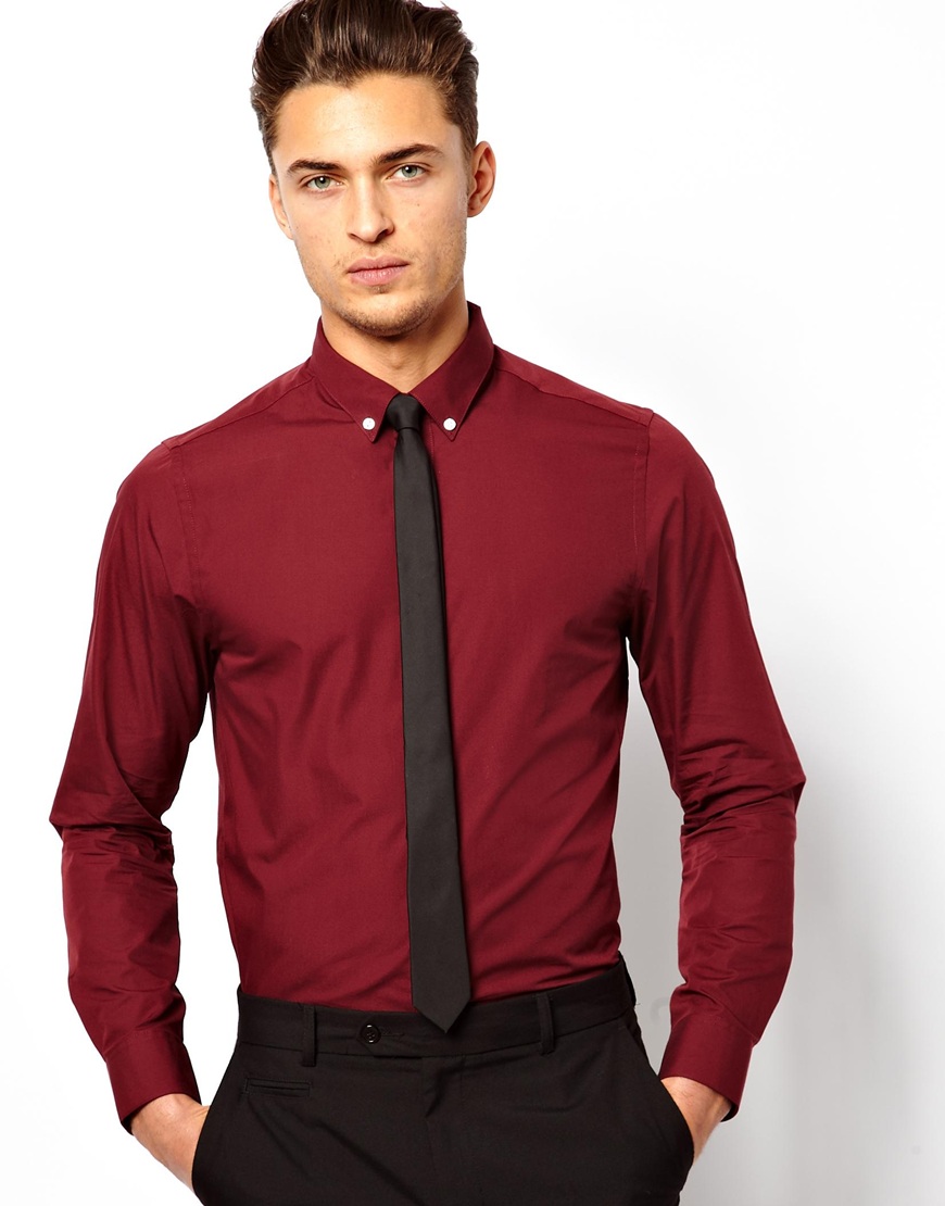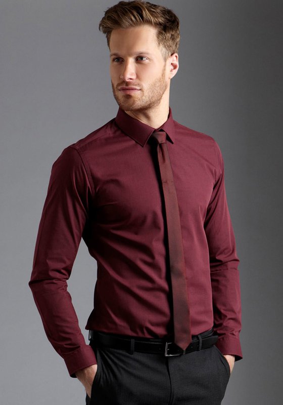 - Βουργουνδία... Συνιστάται να συνδυάσετε μπορντό ρούχα με γραβάτες σκούρων αποχρώσεων. Μαύρα ή σκούρα μπλε δείγματα είναι κατάλληλα. Η επιλογή με μια λωρίδα που επαναλαμβάνει την τονικότητα του πουκάμισου θα φανεί καλή.